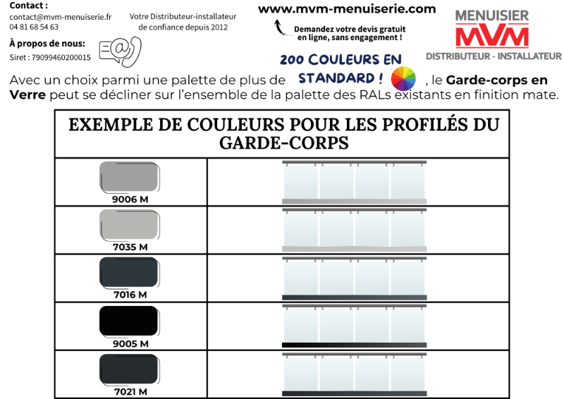 Le garde corps : Exemples de couleurs profilés - MVM menuisier Lyon Rhône