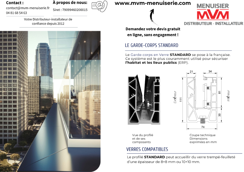 Le garde-corps standard - MVM menuisier Lyon Rhône