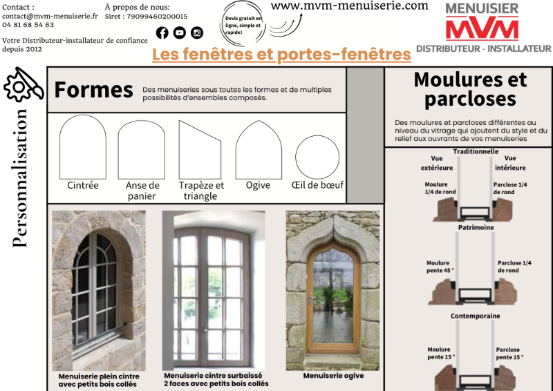 Les fenêtres et portes-fenêtres: Formes, molures et parcloses - MVM menuisier Lyon Rhône